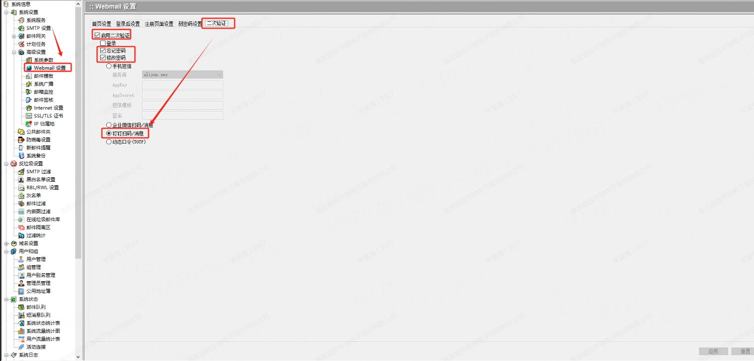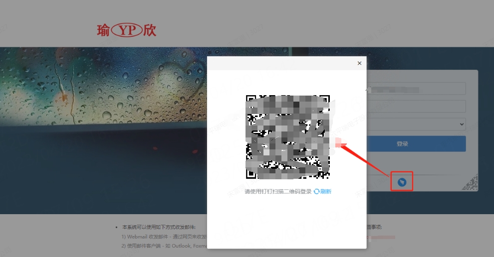 第一步:登录http://mail.jianzhan100.com:6080/网页版邮箱,按图示用钉钉扫描绑定