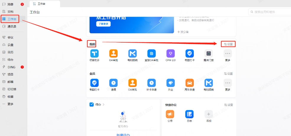 任意PC、手机上登录钉钉,在钉钉工作台直接免密登录企业邮箱,请参照以下步骤操作: